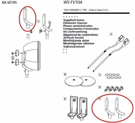 bonjour, je recherche la référence pièce détachée du support (entouré en rouge sur la pièce jointe) fourni avec les pirds WS-FV10 pour l'enceinte SA-VE705.